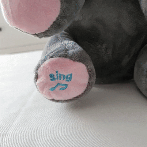 - ENGAGING INTERACTIVE PLAY: This animated elephant stuffed animal features two captivating play modes with adjustable volume. Press the right foot to hear cheerful songs, including the popular 'ABC song,' and press the left foot for a delightful peek-a-boo elephant toy game, where the ears playfully hide his eyes.