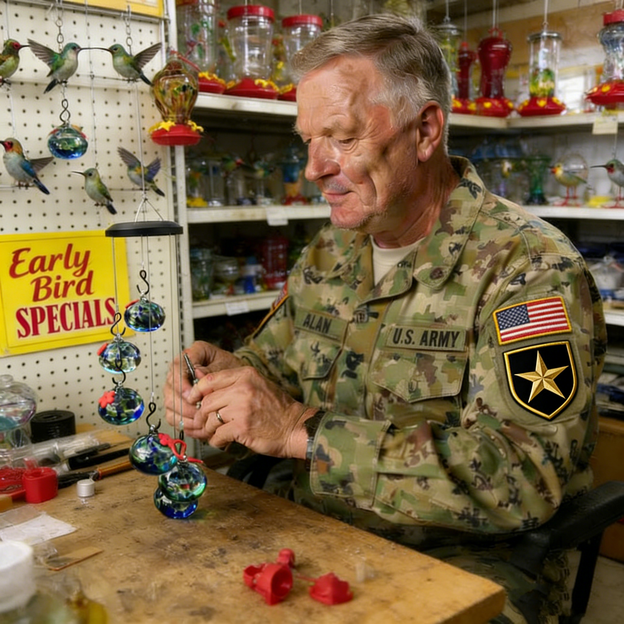 I defended my country and I'm proud of that. Now I defend the small things that keep it alive — like a hummingbird with a drink. Blood in the stripes. Futures in the stars. Handmade by my hands. That’s what I sell.