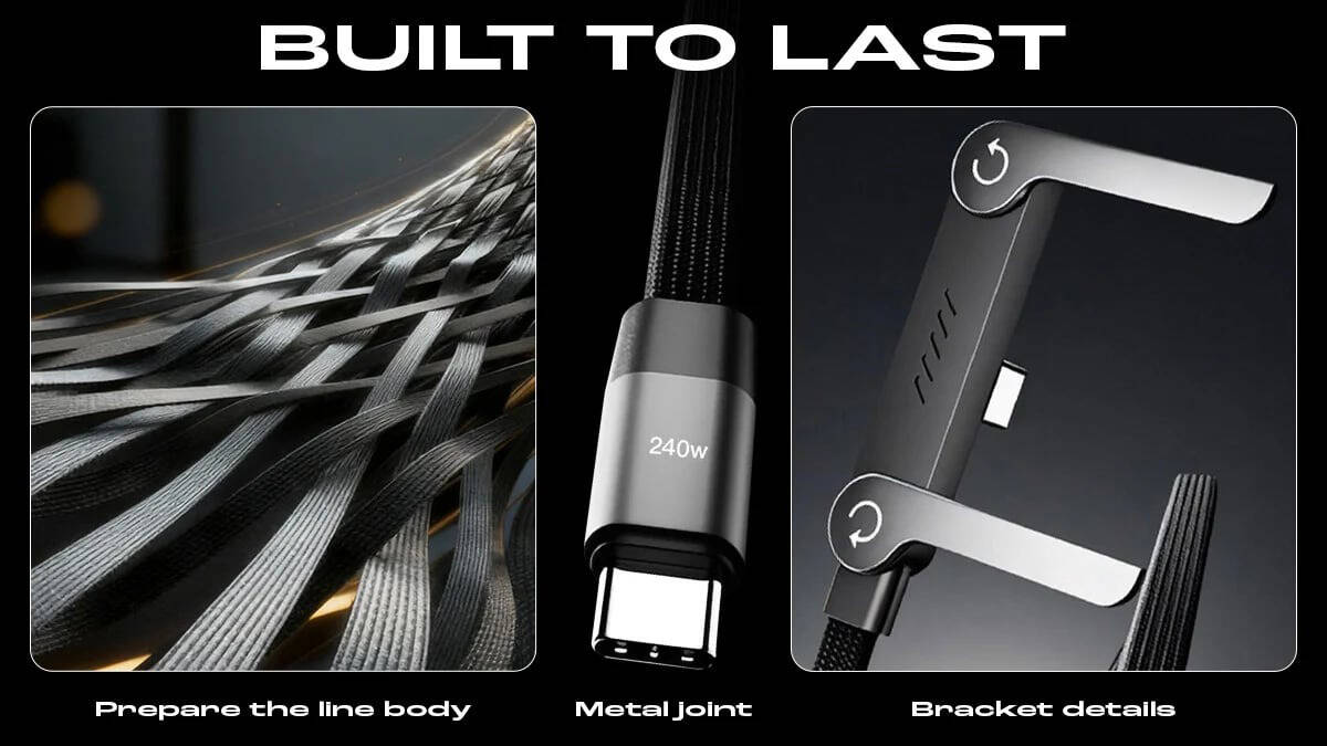 The Invisible Holder Charger Cable is a versatile 2-in-1 solution that combines a high-speed charging cord with a stable phone stand. Engineered for ultimate convenience, it delivers 240W super-fast charging and is perfect for gaming, office use, and travel.