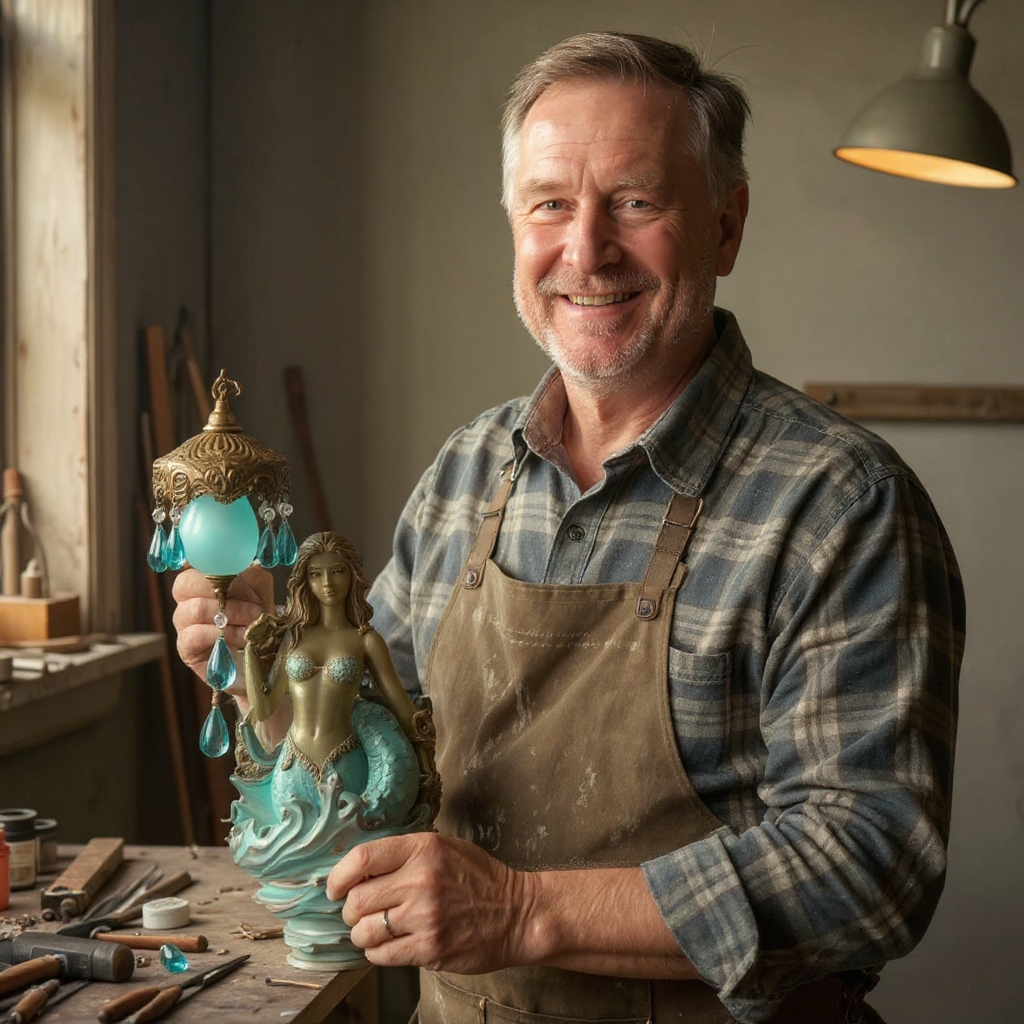 Illuminate your space with the grace of a sea fairy, clutching a luminous shell, bringing the serenity and romance of a sea breeze.