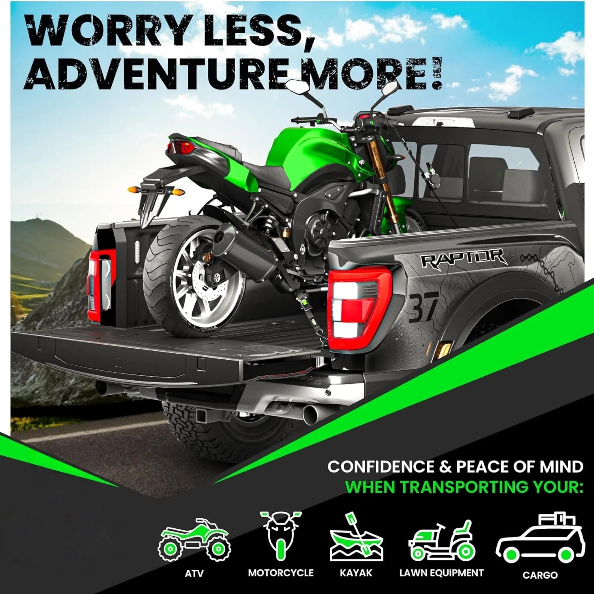 Convenient Handling: Effortlessly organize and transport cargo with our retractable ratchet straps. Our innovative design eliminates tangled straps and simplifies tensioning, ensuring convenient handling and fast recoiling for easy use.